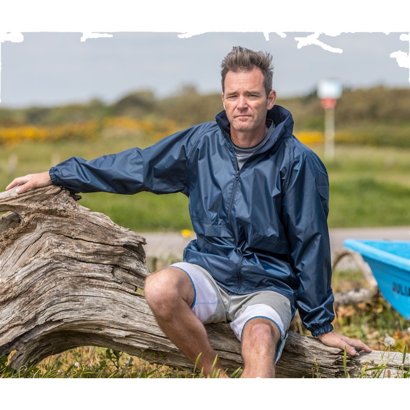 Poignets élastiques avec protection contre les intempéries. Capuche repliable avec cordon de réglage. Poches zippées.