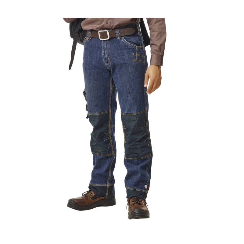 Taille ajustable. Ourlet à rallonge. Poches pour genouillères et renfort aux genoux.